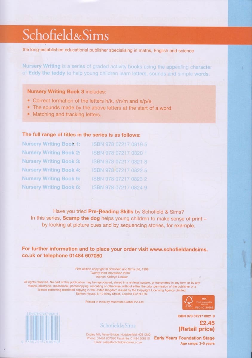 Nursery Writing is a series of graded activity books using the appealing character of Eddy the teddy to help young children learn letters, sounds and simple words.