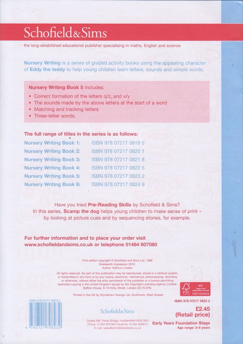 Nursery Writing is a series of graded activity books using the appealing character of Eddy the teddy to help young children learn letters, sounds and simple words.