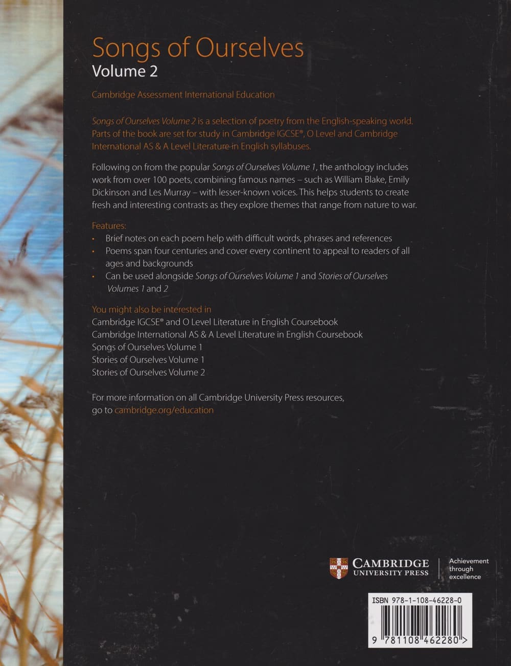 Songs of Ourselves Volume 2 is a selection of poetry from the English-speaking world. Parts of the book are set for study im Cambridge IGCSE”, O Level and Cambridge International AS & A Level Literature in English syllabuses.